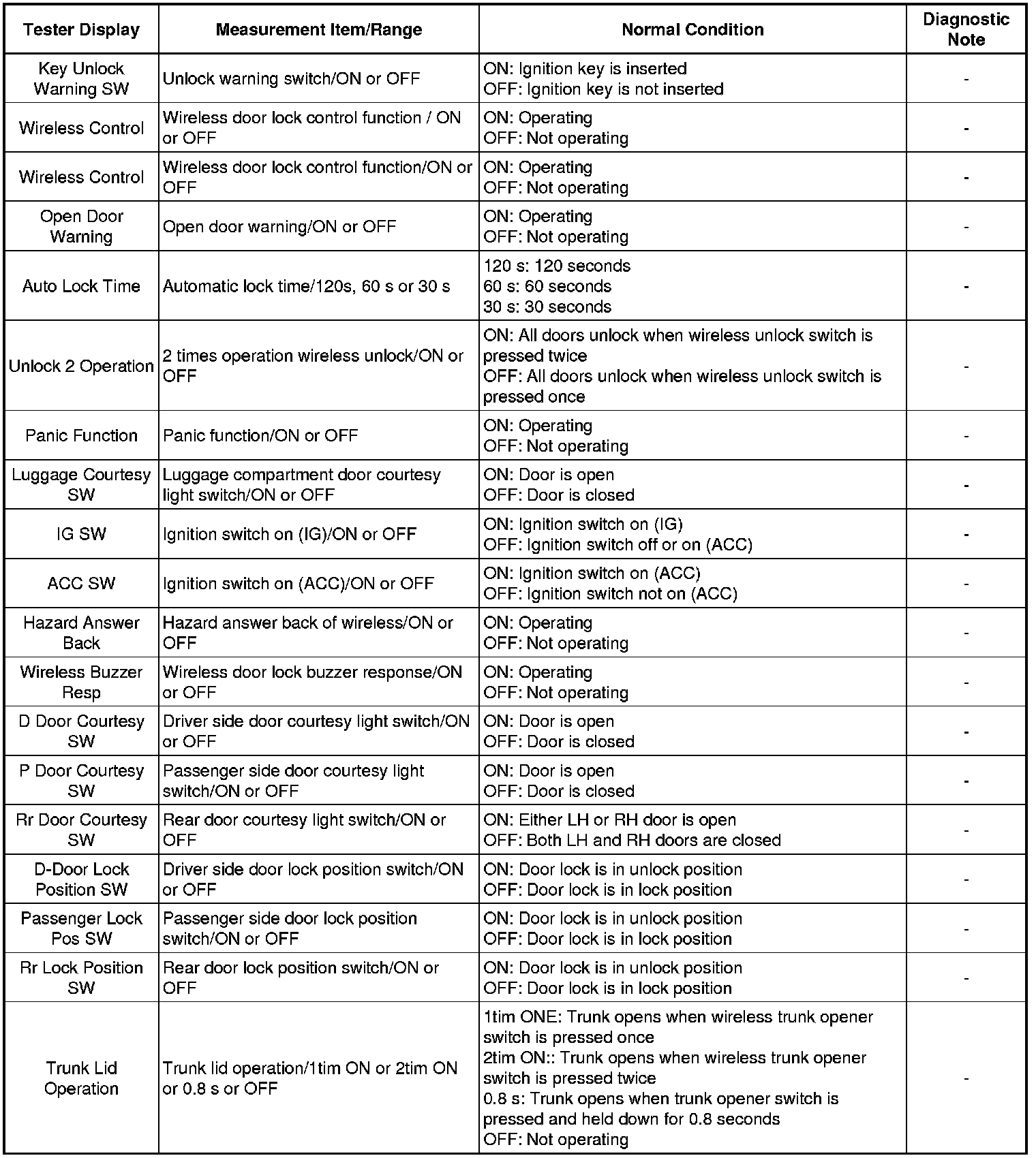 DOOR LOCK: WIRELESS DOOR LOCK CONTROL SYSTEM: DATA LIST / ACTIVE TEST