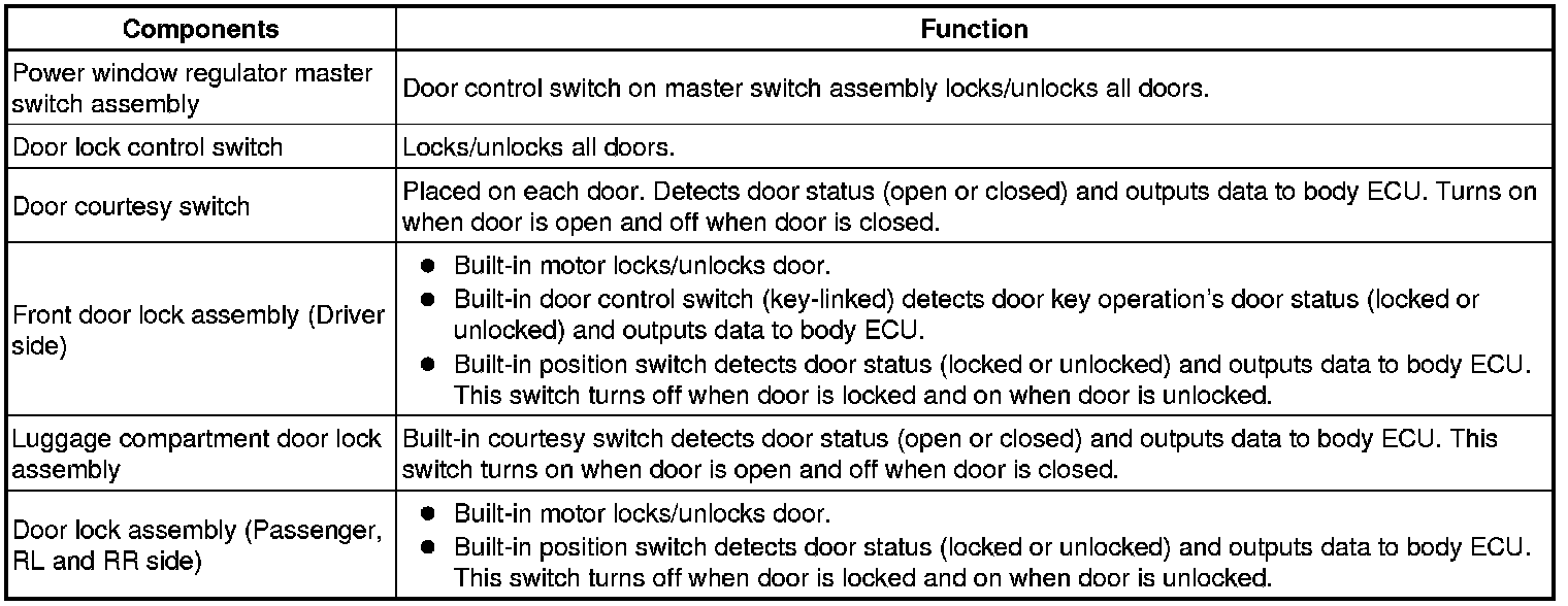 * The door control switch of the master switch assembly on the driver's door and the driver's door key cylinder send lock/unlock request signals to each door lock motor assembly through the body ECU.