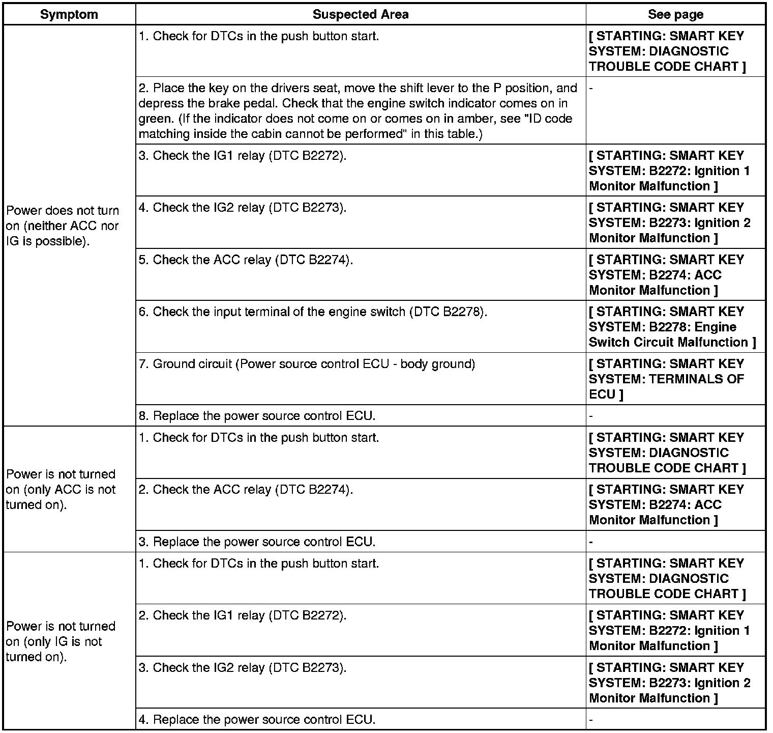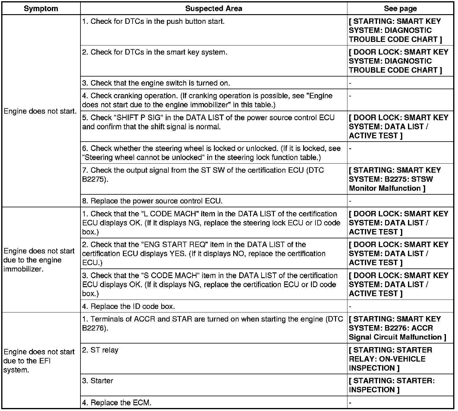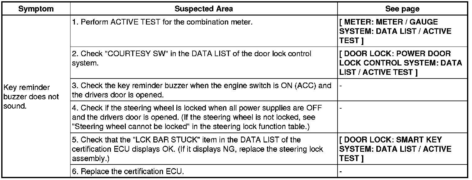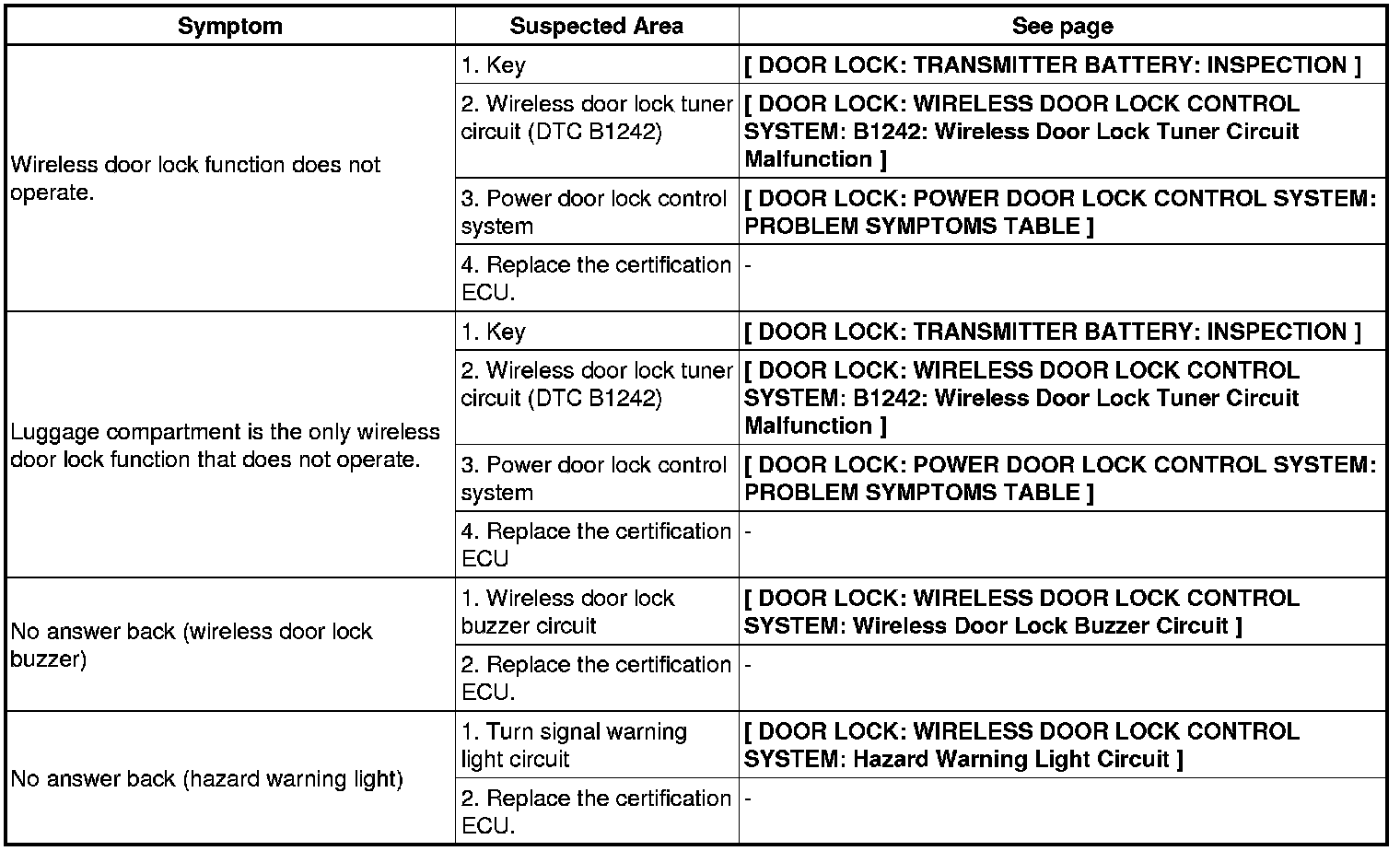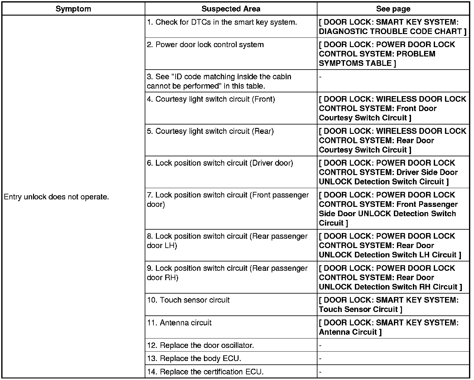 DOOR LOCK: SMART KEY SYSTEM: PROBLEM SYMPTOMS TABLEEntry Lock / Unlock Function: