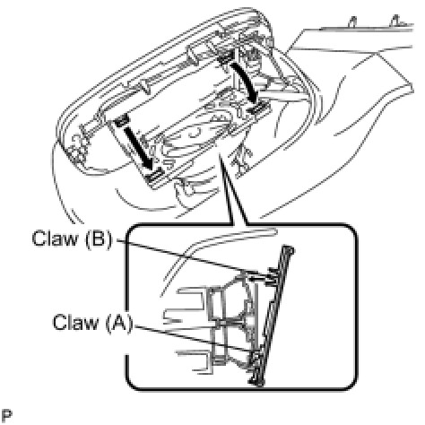 (a) Insert claws (A) at in the lower part of of the mirror into the actuator holes.