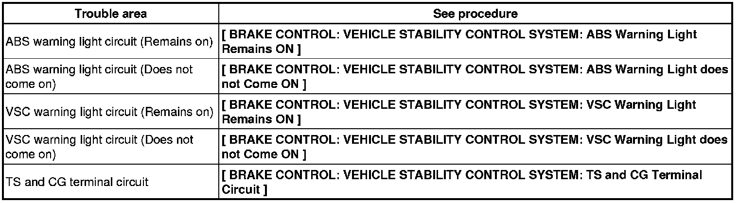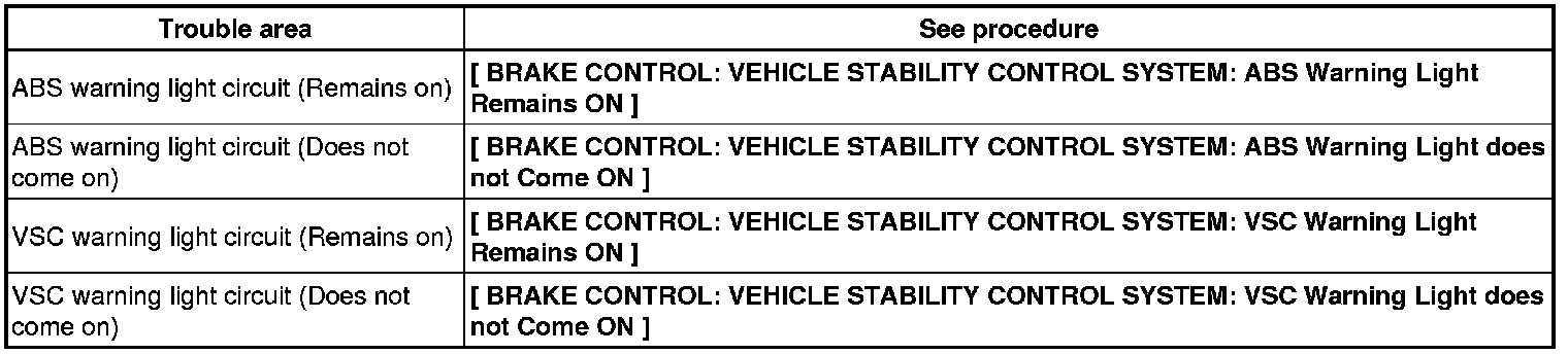 If the ABS and VSC warning lights do not blink, inspect the ABS warning light circuit and/or VSC warning light circuit.