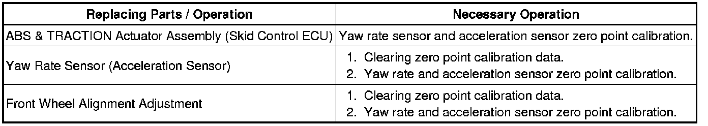 * After replacing the VSC relevant components or performing "Front wheel alignment adjustment", clear and read the sensor calibration data.