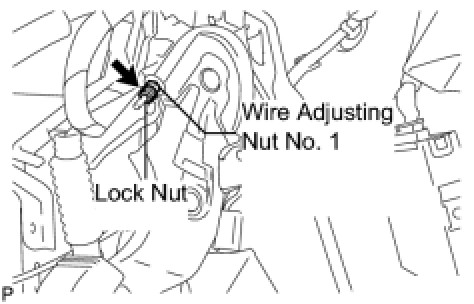 (d) Hold the wire adjusting nut No.1 using a wrench or equivalent tool and tighten the lock nut.
