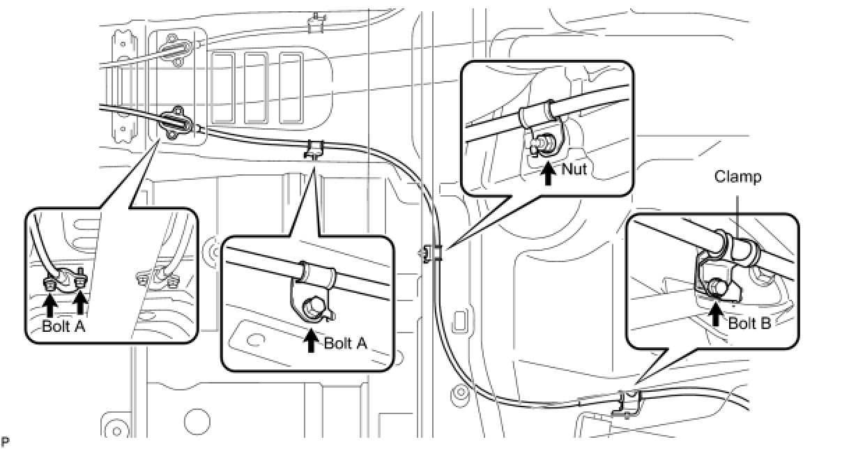 (c) Install the parking brake cable assembly No.3 with the bolts, nut and clamp as shown in the illustration.