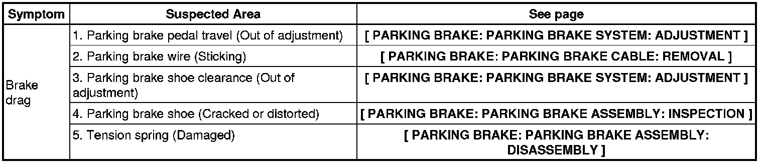 PARKING BRAKE: PARKING BRAKE SYSTEM: PROBLEM SYMPTOMS TABLE
