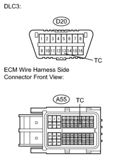 Connecting terminals TC and CG of the DLC3 causes the system to enter self-diagnostic mode. If a malfunction is present, DTCs will be output.