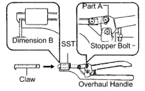 (a) Install the claw to the overhaul handle, inserting it in the hole in part A as shown in the illustration.