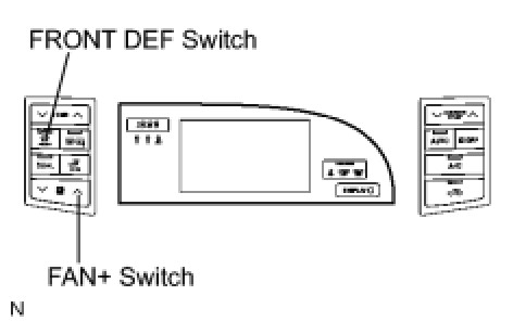 (a) Turn the ignition switch on (IG) while pressing the FRONT DEF switch and FAN+ switch simultaneously.
