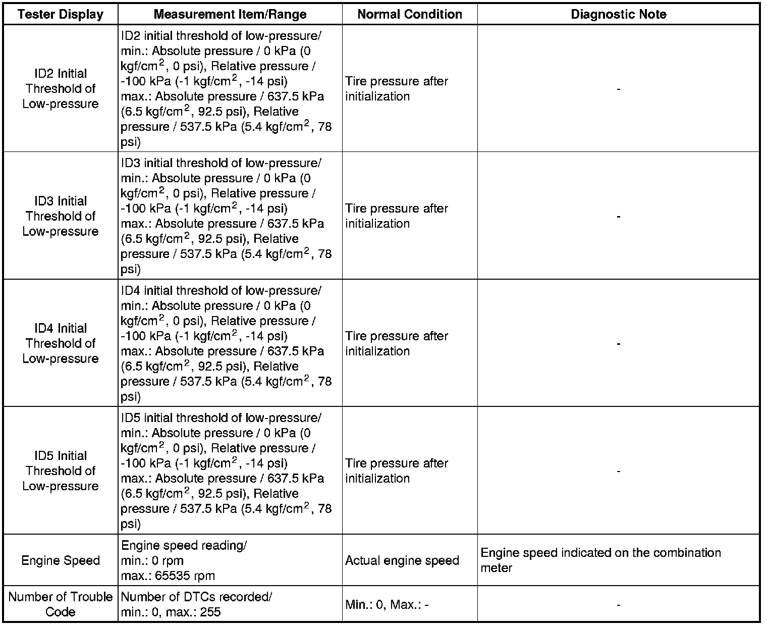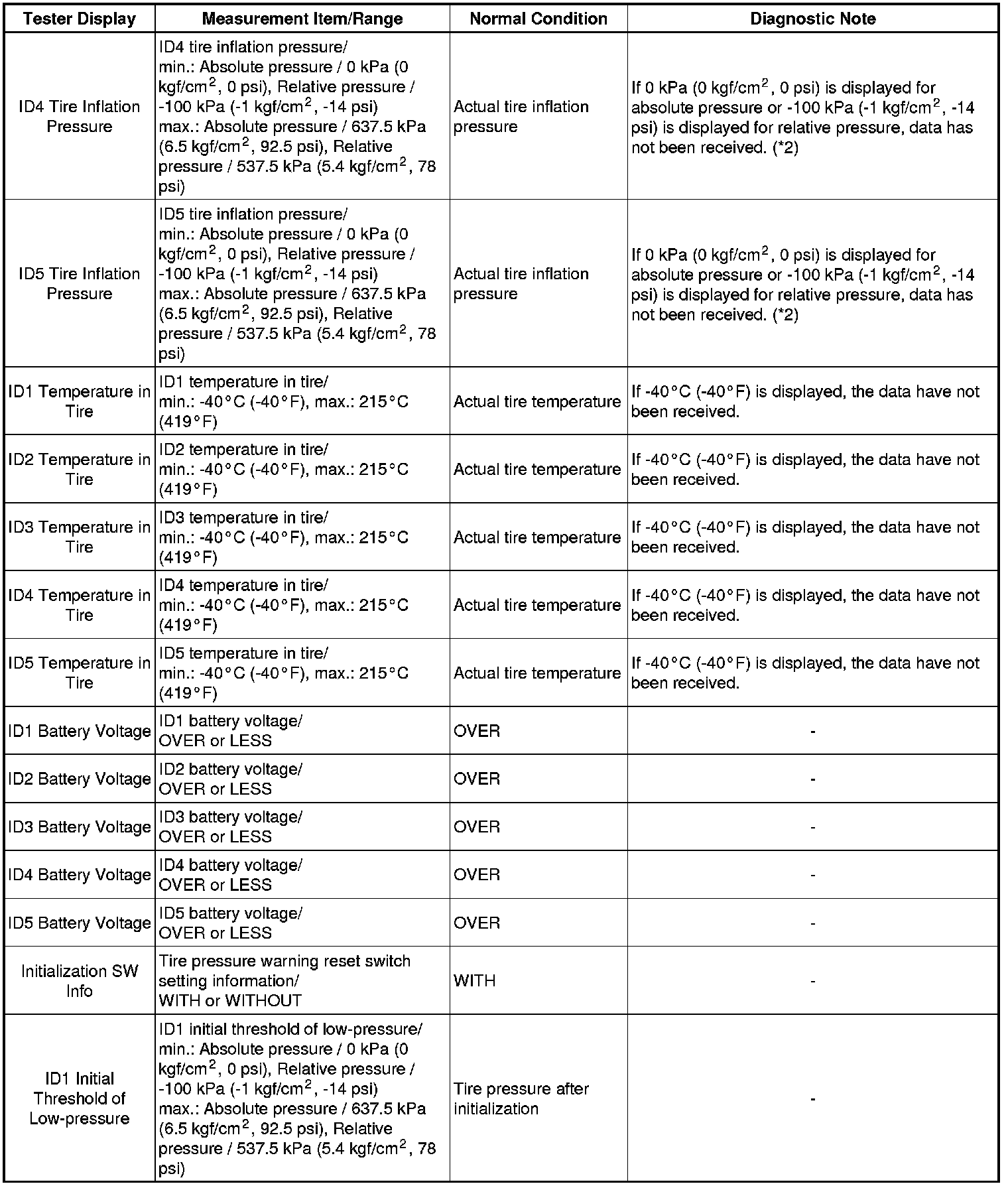 TIRE AND WHEEL: TIRE PRESSURE WARNING SYSTEM: DATA LIST / ACTIVE TEST