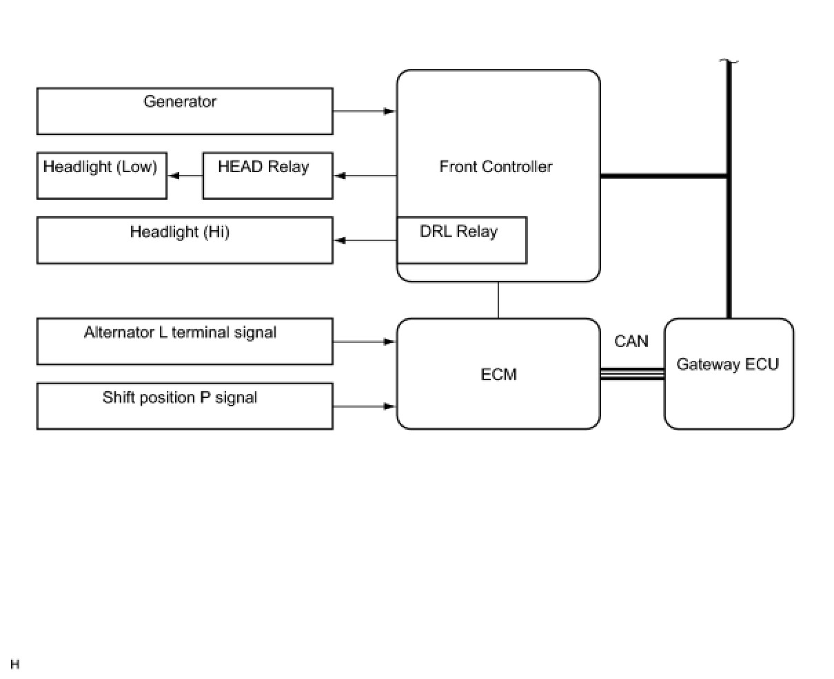 (4) The front controller receives the headlight ON signal from the body ECU, and then controls on / off operation of the following: