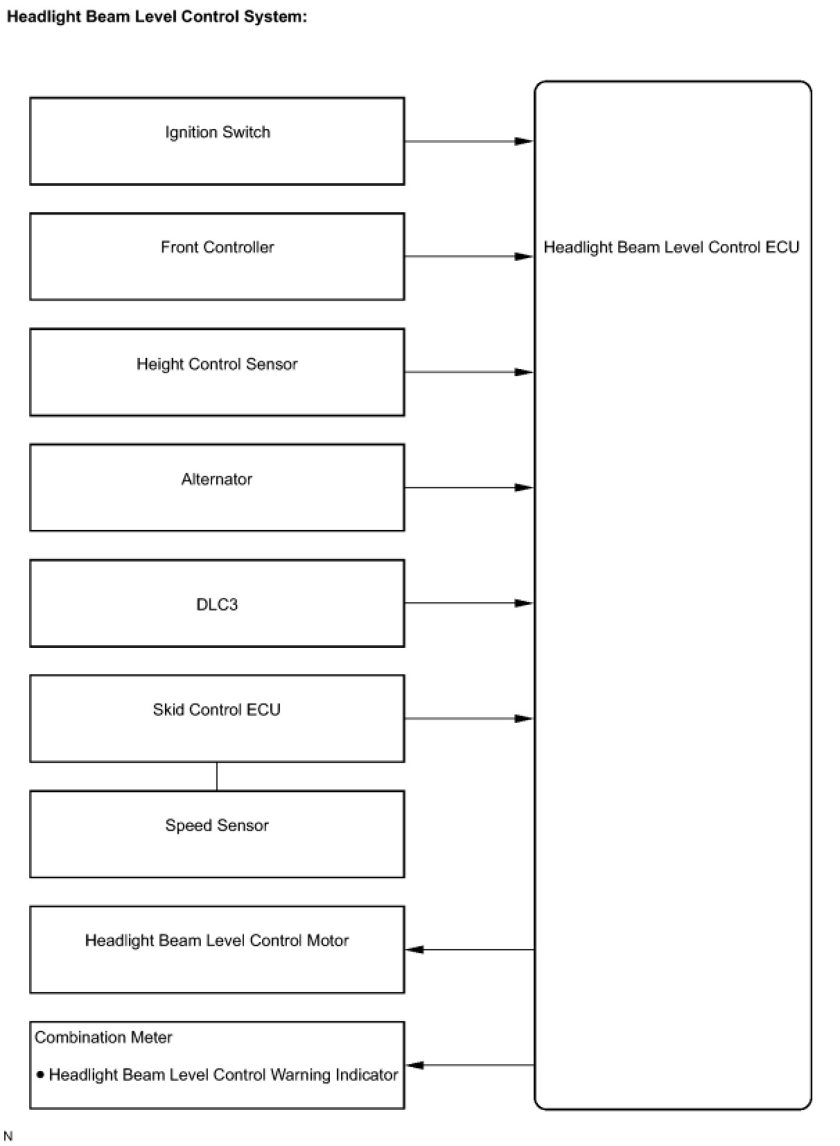 * Sent to the combination meter when the headlight beam level control ECU is malfunctioning.