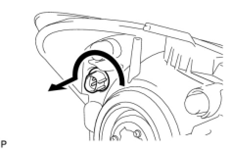 (a) Turn the front turn signal light bulb and the front turn signal light socket in the direction indicated by the arrow and remove them as a unit.