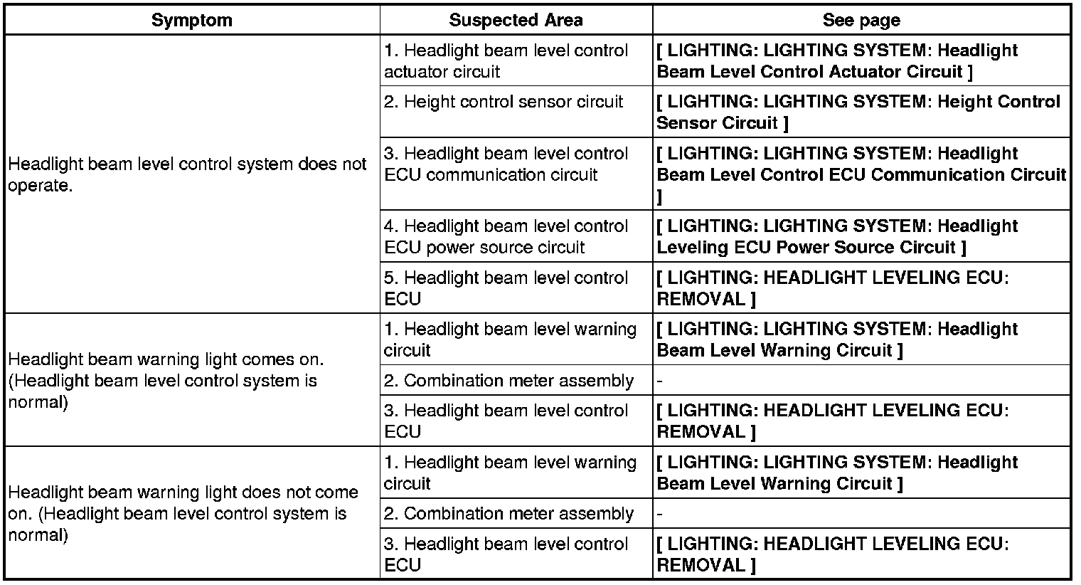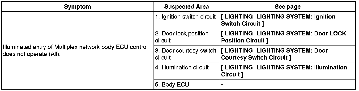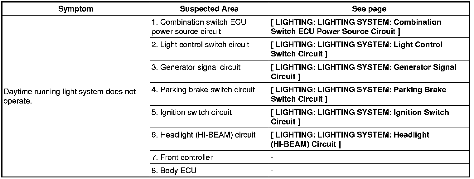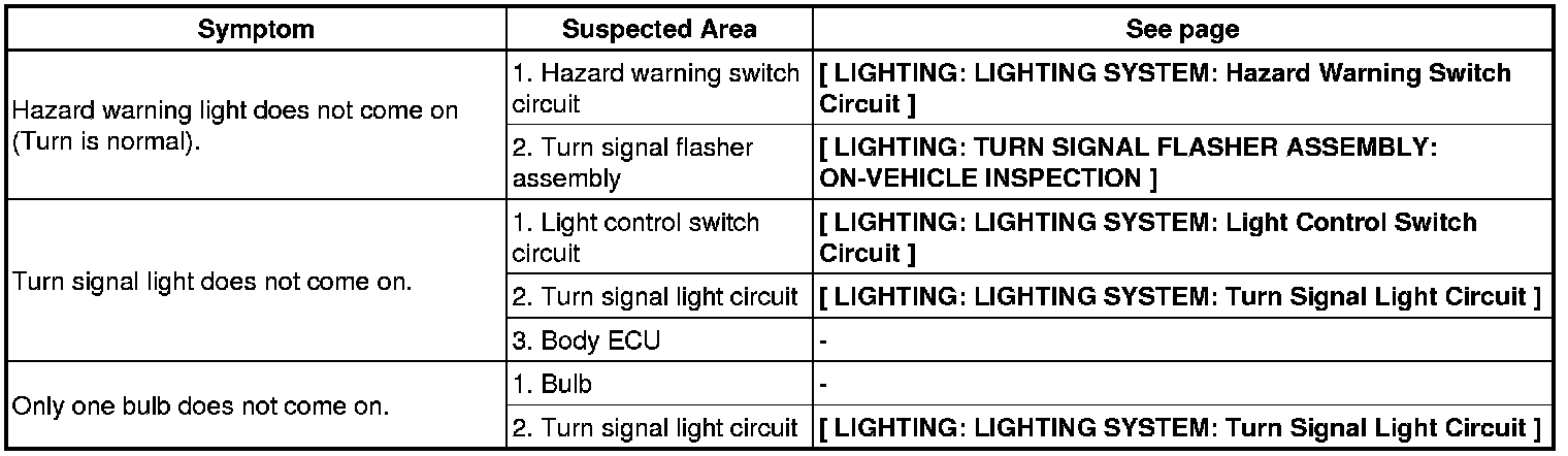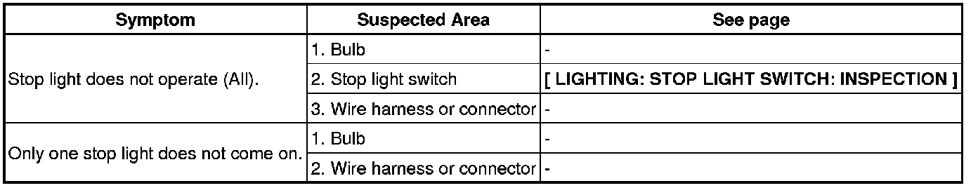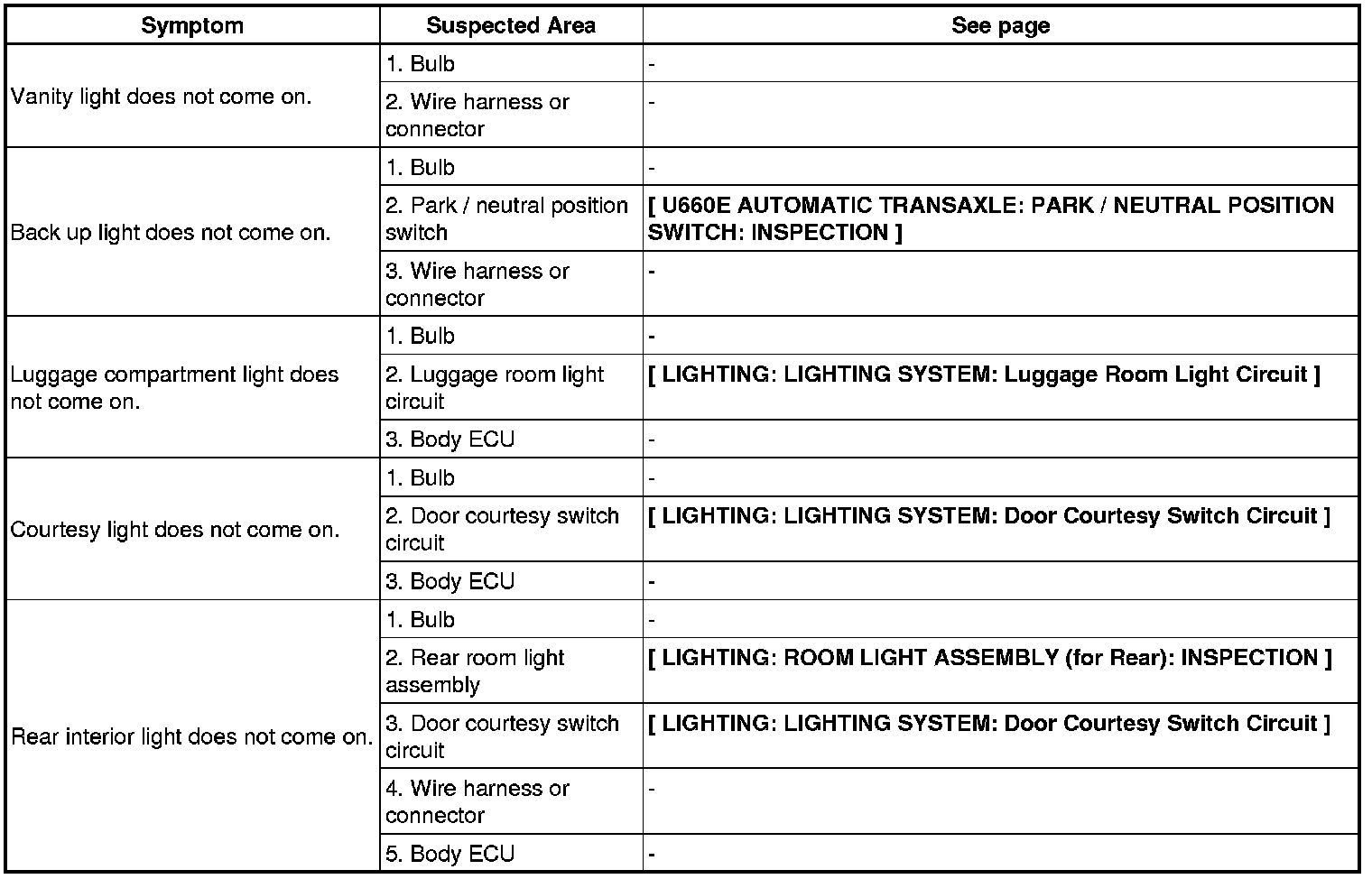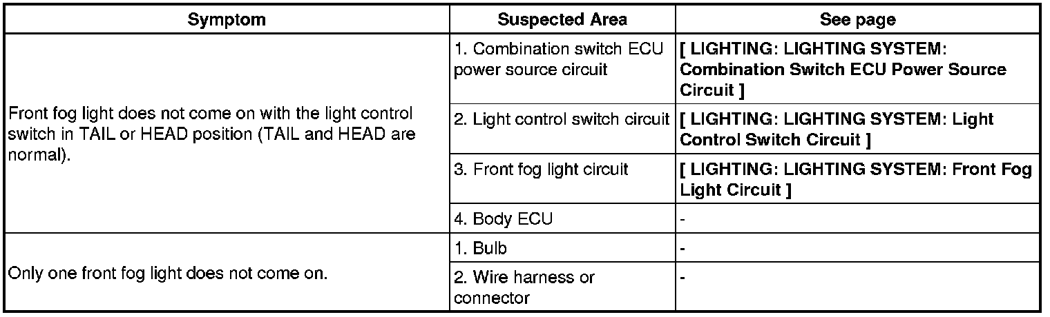 LIGHTING: LIGHTING SYSTEM: PROBLEM SYMPTOMS TABLE