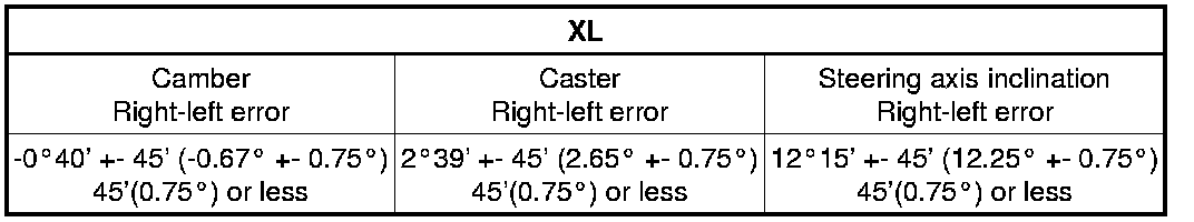 (2) The body and suspension may be damaged if the camber is not correctly adjusted according to the above table.