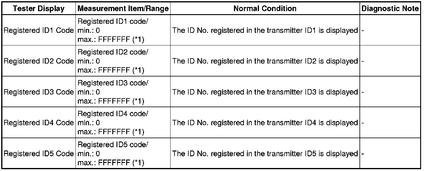 (1) Read the registered transmitter IDs that are stored in the old ECU using the Techstream and note them down. Enter the following menus: Chassis / Tire Pressure Monitor / Data List.