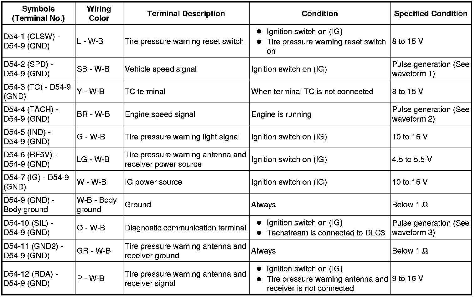 TIRE AND WHEEL: TIRE PRESSURE WARNING SYSTEM: TERMINALS OF ECU