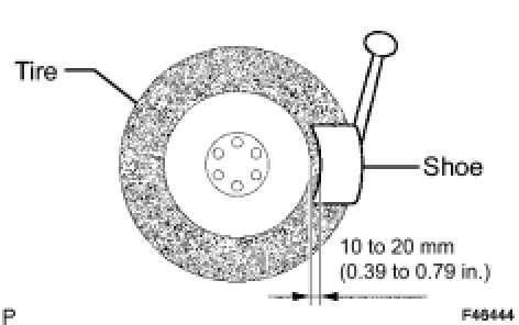 (c) After dropping the tire pressure warning valve and transmitter into the tire, disengage the bead using the shoe of the tire remover.