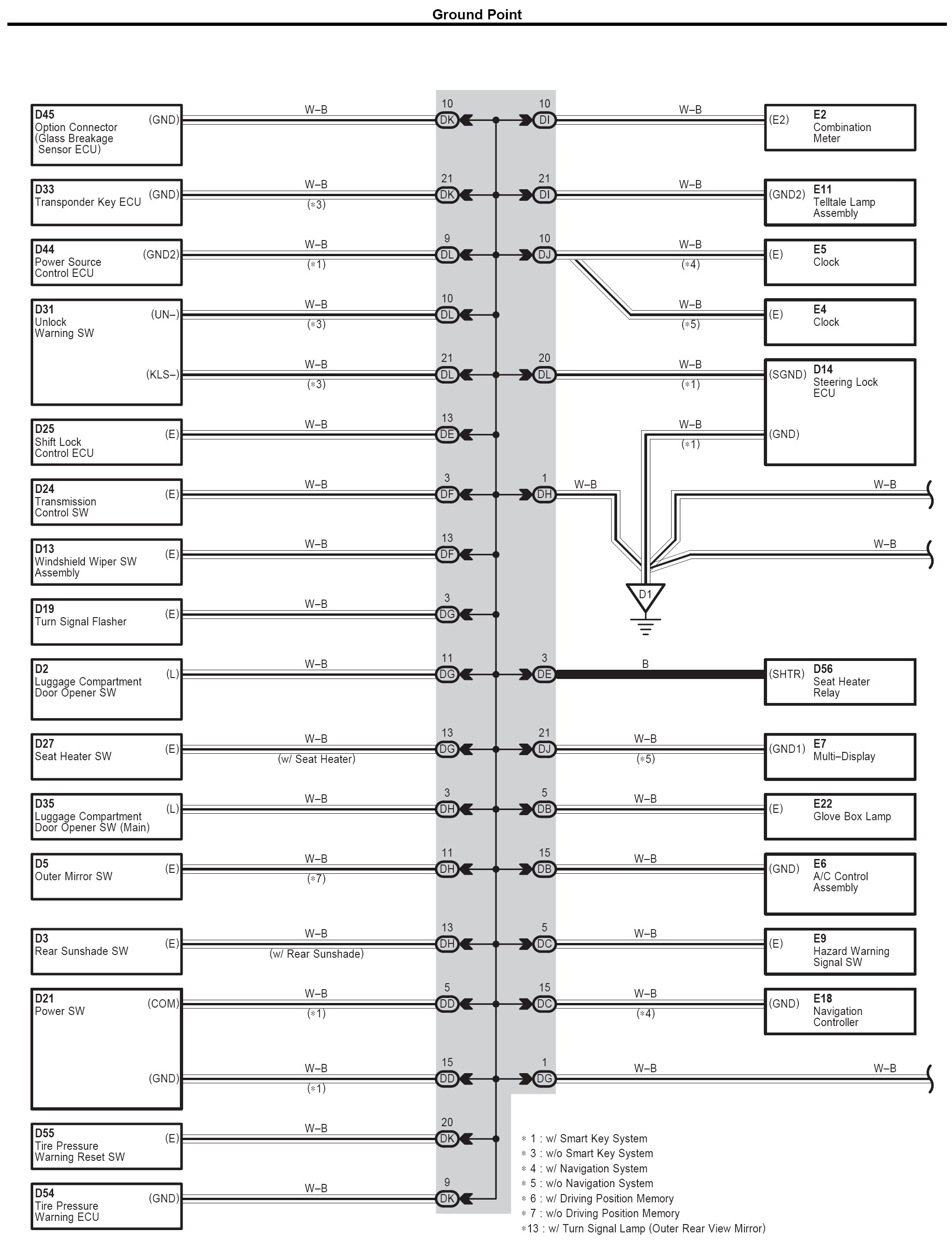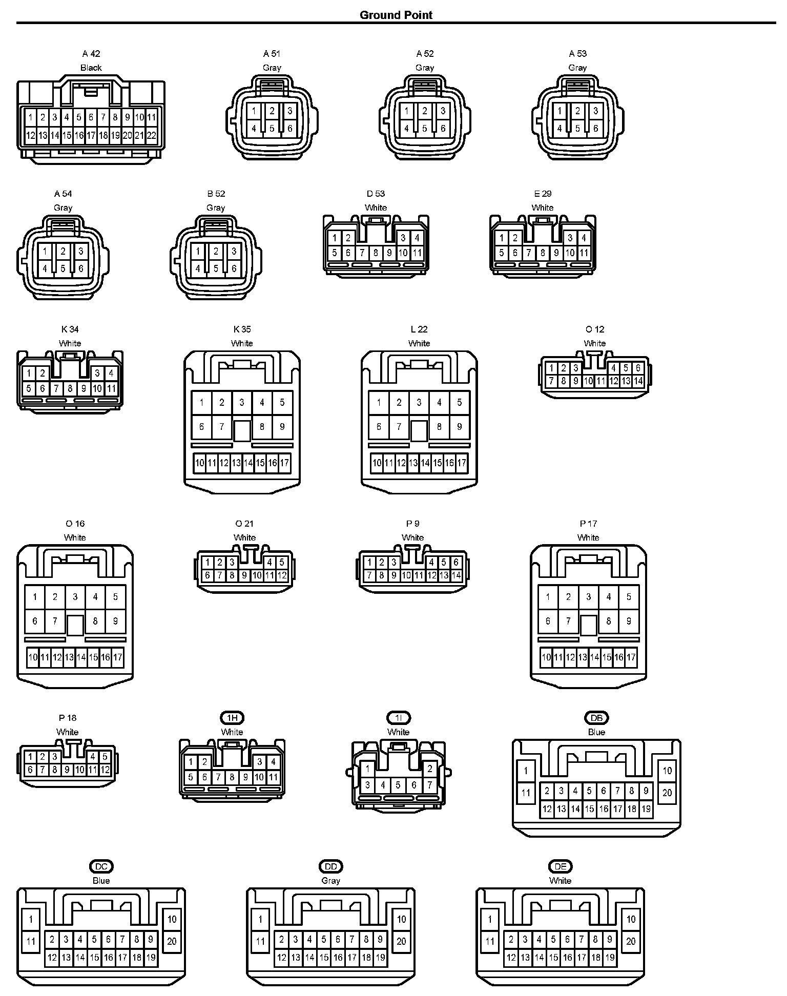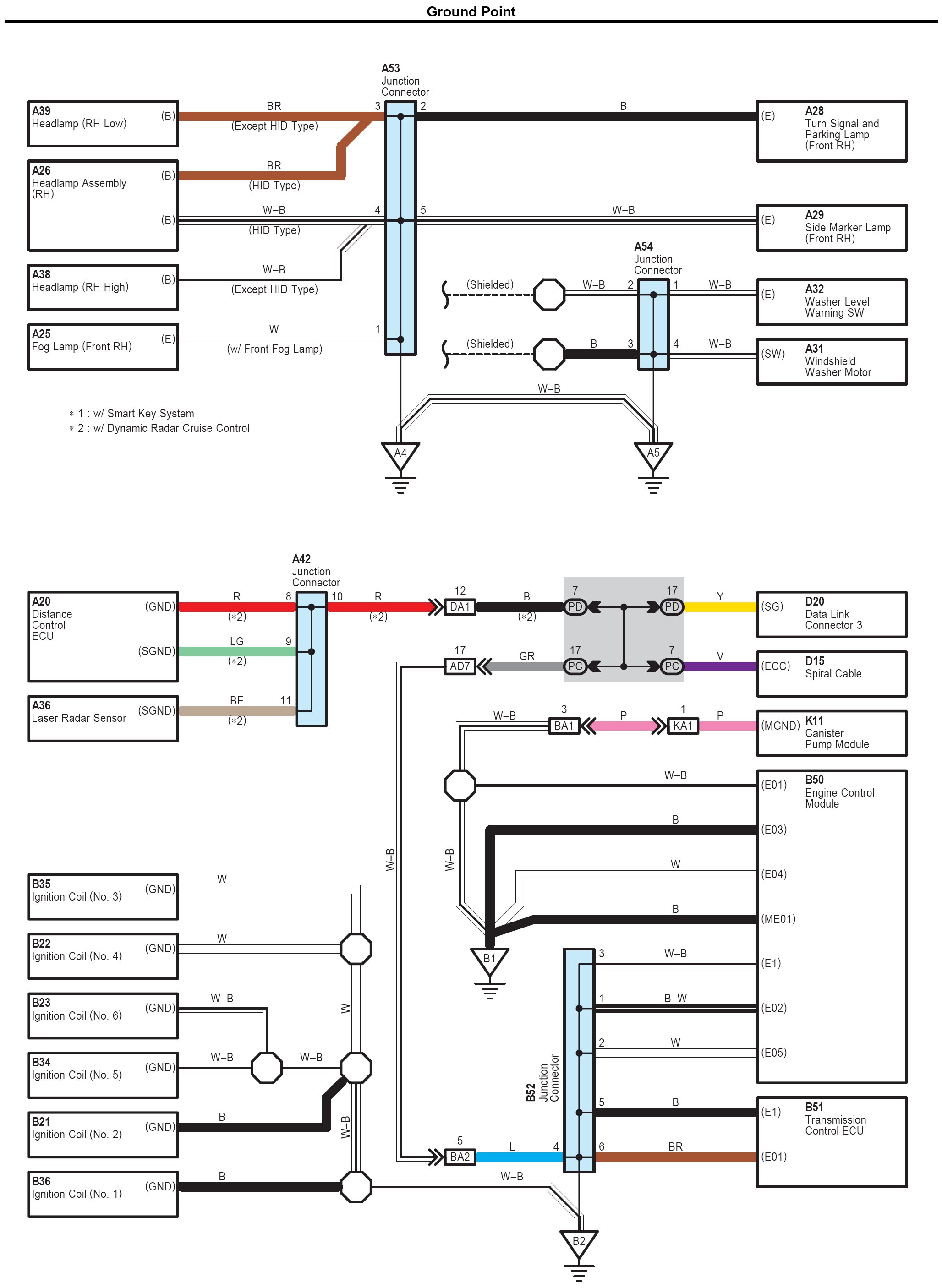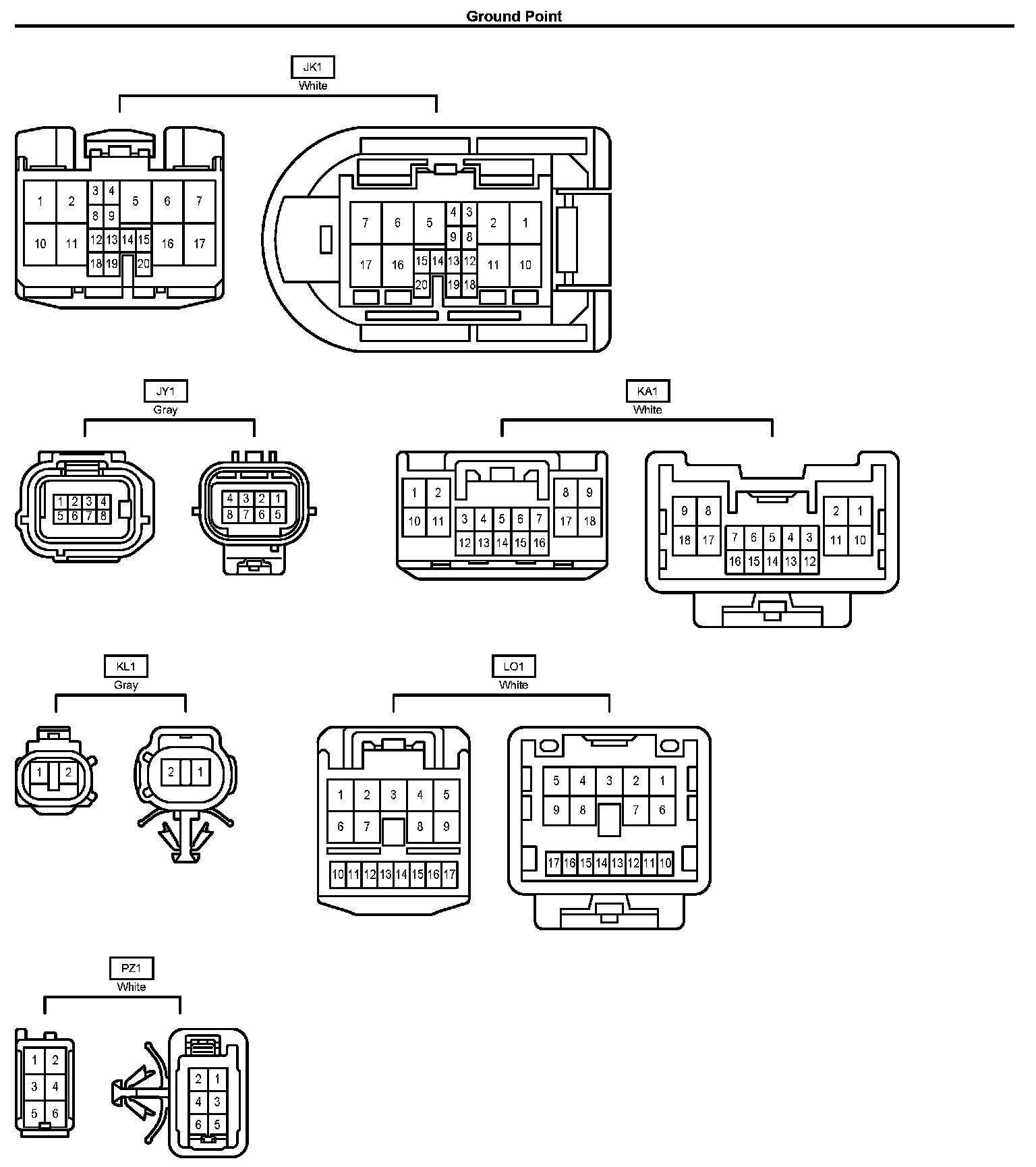 Locations: The locations of components, connectors, ground points, and splices referred to within these diagrams can be found at Vehicle Locations.