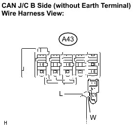 (a) Disconnect the distance control ECU sub bus line connector (A43) from the CAN J/C B side (without earth terminal).