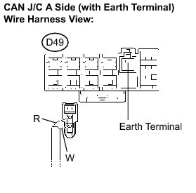 (a) Reconnect the yaw rate sensor sub bus line connector (D49) to the CAN J/C A side (with earth terminal).