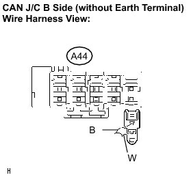 (a) Reconnect the skid control ECU main bus line connector (A44) to the CAN J/C B side (without earth terminal).