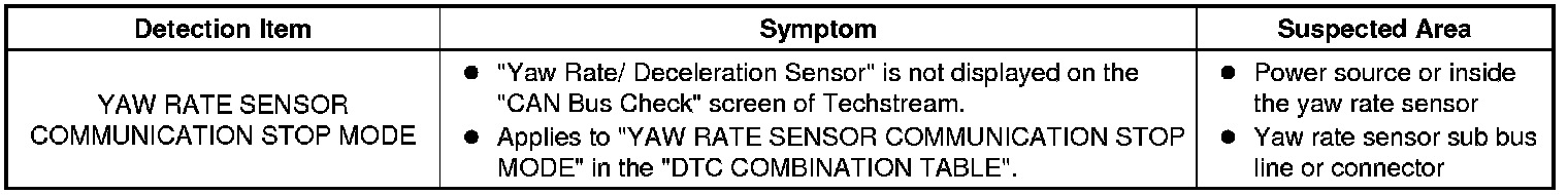CAN COMMUNICATION: CAN COMMUNICATION SYSTEM: Yaw Rate Sensor Communication Stop Mode