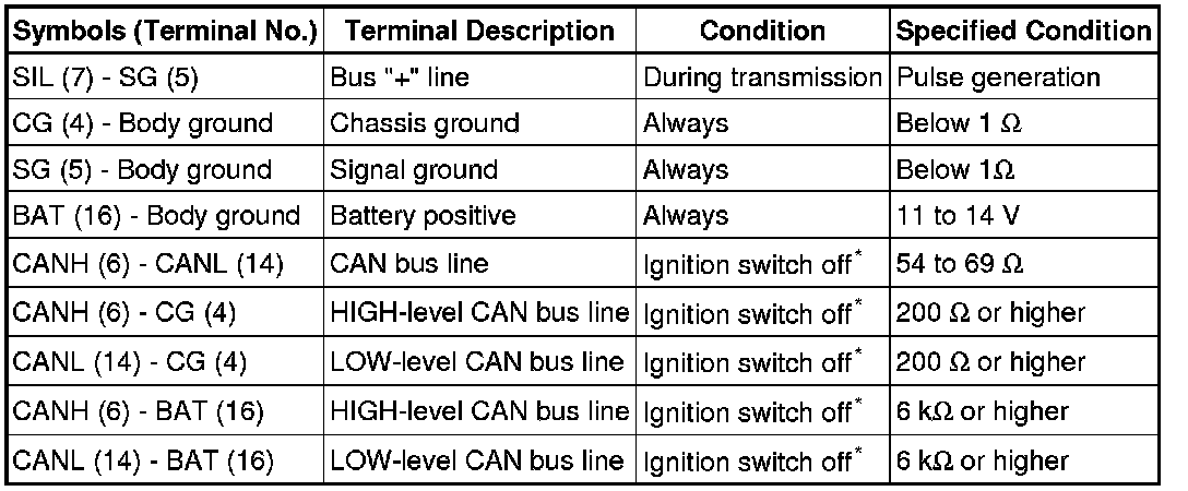 *Before measuring the resistance, leave the vehicle as it is for at least 1 minute and do not operate the ignition switch, or any other switches or the doors.