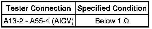 When the engine is operating in the low-to-mid speed range, this control operates the AICV to close one of the air cleaner inlets. When the engine speed is more than 3600 rpm and the opening angle of the throttle valve is more than 60°, the ECM activates the VSV and opens the AICV.
