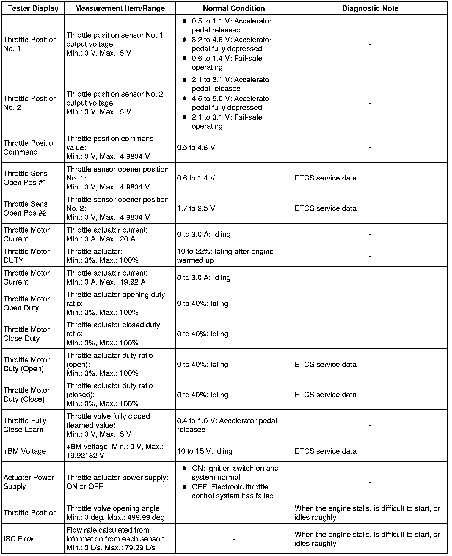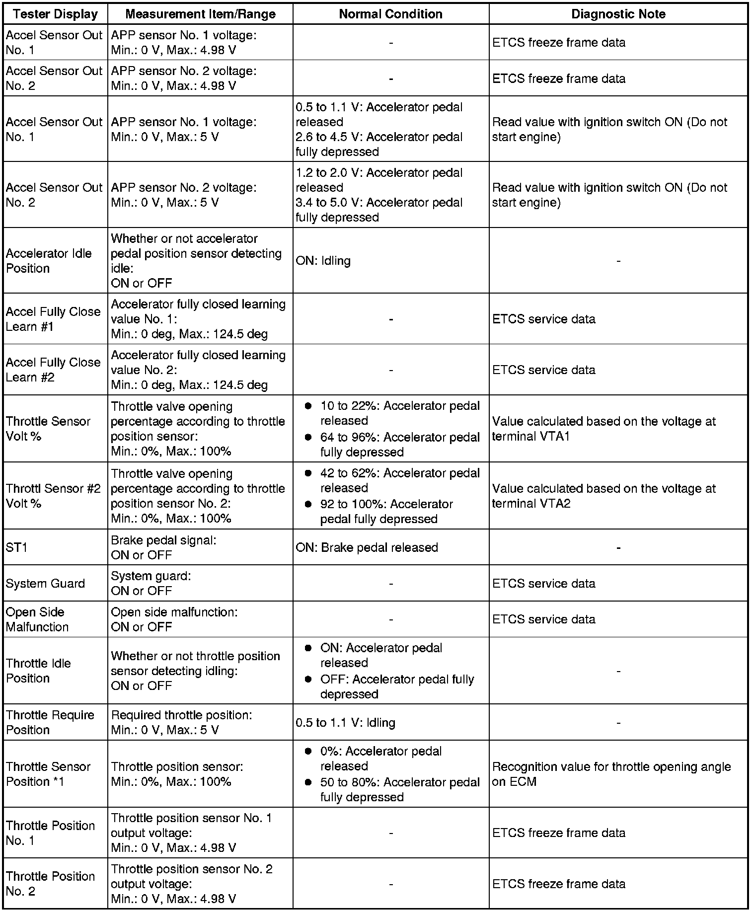 * *1: Excluding throttle valve opening percentage due to idle speed control.
