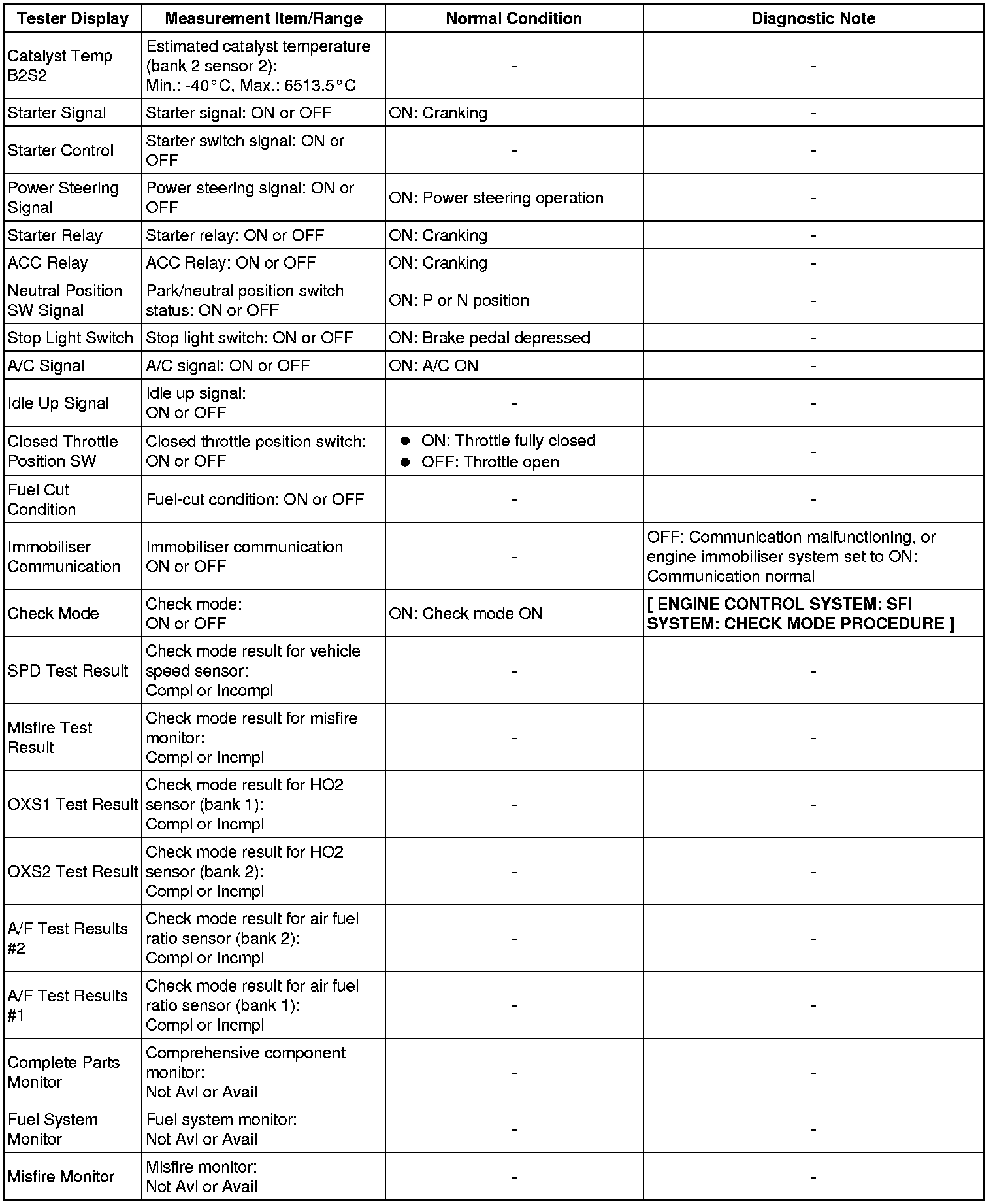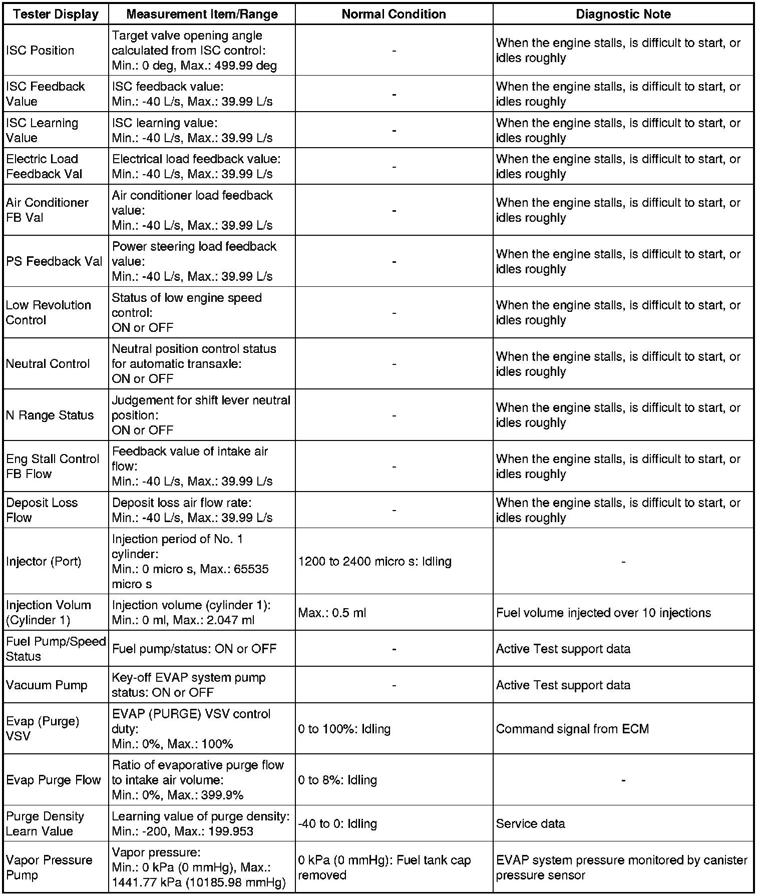 * Normal Condition: If no idling conditions are specified, the shift lever should be in the N or P position, and the A/C switch and all accessory switches should be OFF.