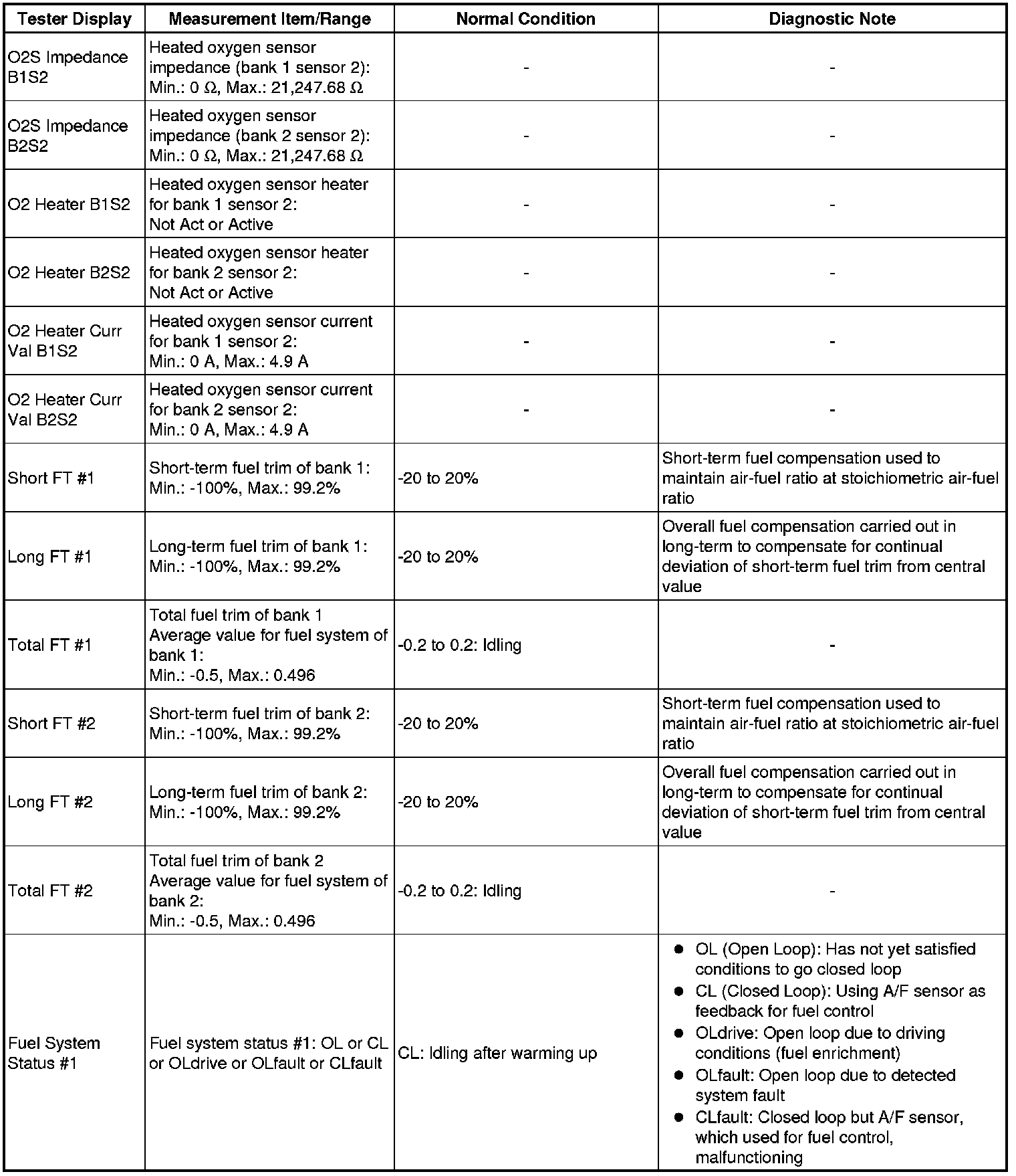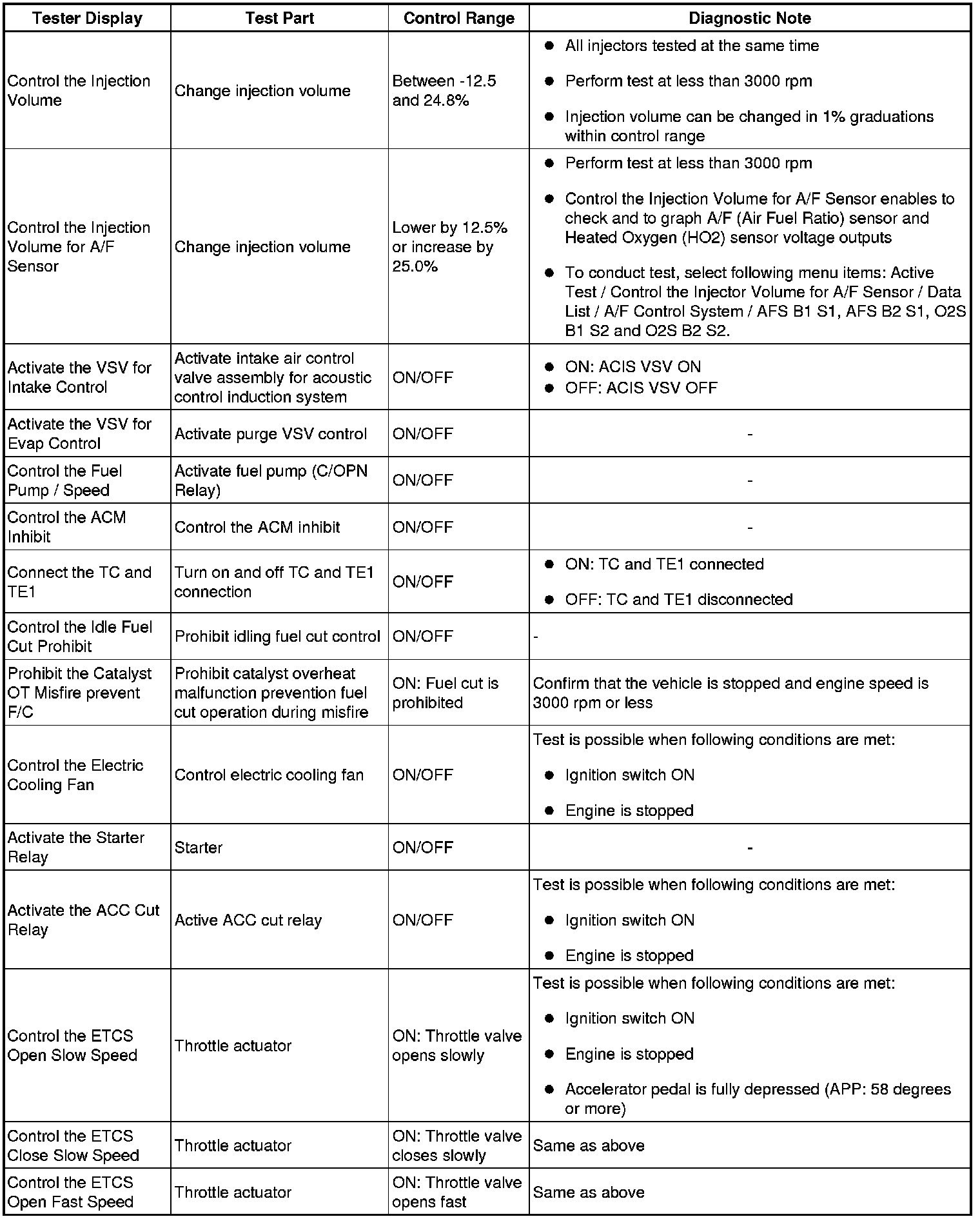 (e) Perform the Active Test by referring to the table below.