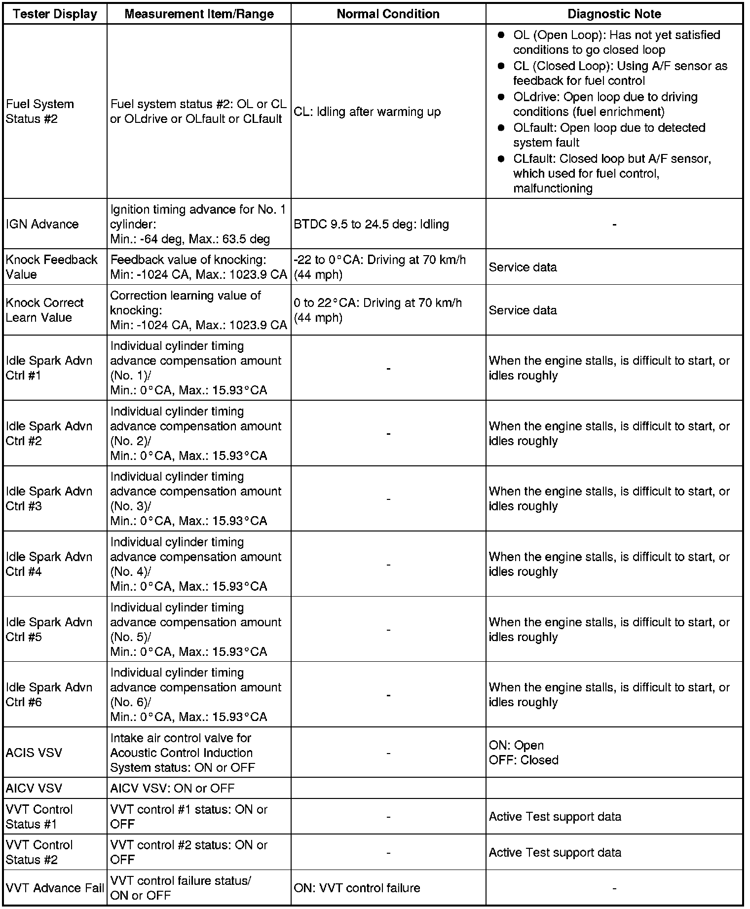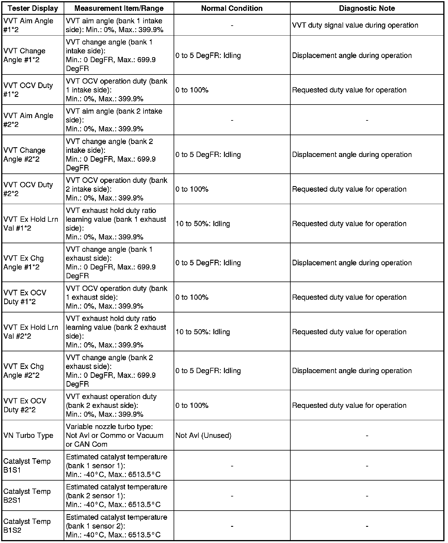 * *2: Data List values are displayed only when performing the following Active Tests: Control the VVT Linear (Bank1), Control the VVT Linear (Bank2), Control the VVT Exhaust Linear (Bank1) and Control the VVT Exhaust Linear (Bank2). For other Active Tests, the Data List value will be 0.