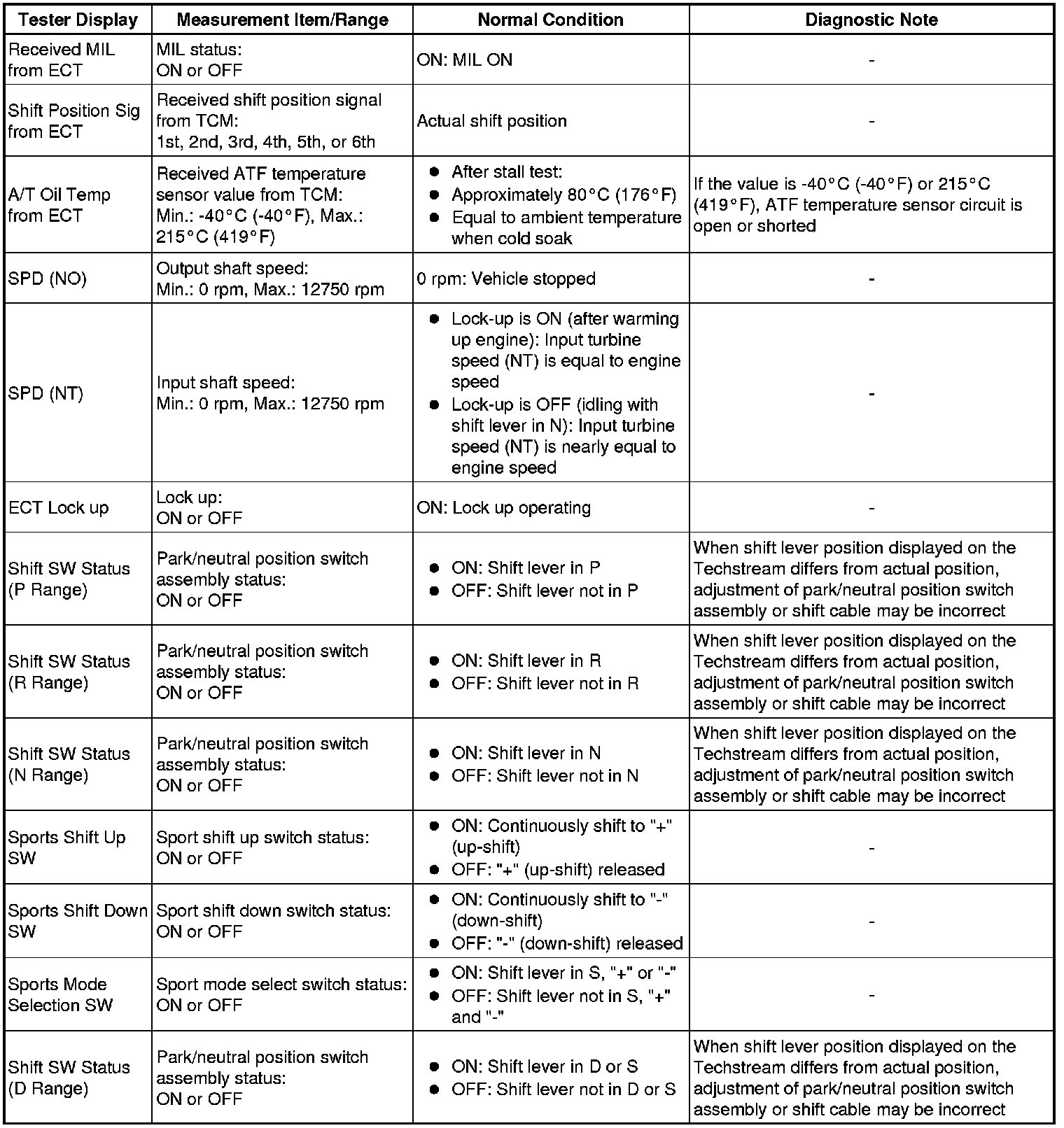 By reading the Data List displayed on Techstream, you can check values, including those of the switches, sensors, and actuators, without removing any parts. Reading the Data List as the first step in troubleshooting is one method of shortening diagnostic time.