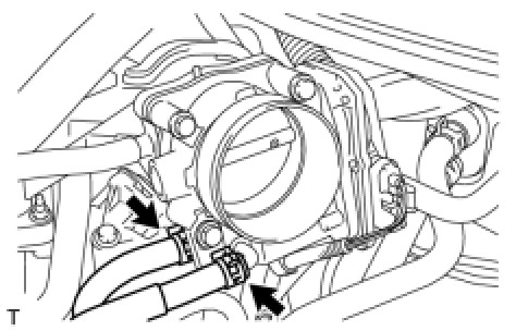 (a) Connect the 2 water by-pass hoses to the throttle w/ motor body assembly.