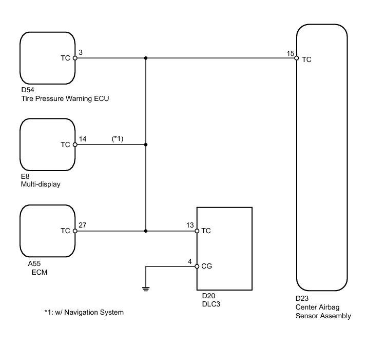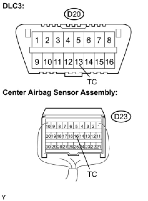 NG -- REPAIR OR REPLACE WIRE HARNESS (TC OF DLC3 - TC OF CENTER AIRBAG SENSOR ASSEMBLY)