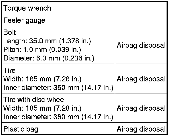PREPARATION: SUPPLEMENTAL RESTRAINT SYSTEM: EQUIPMENT