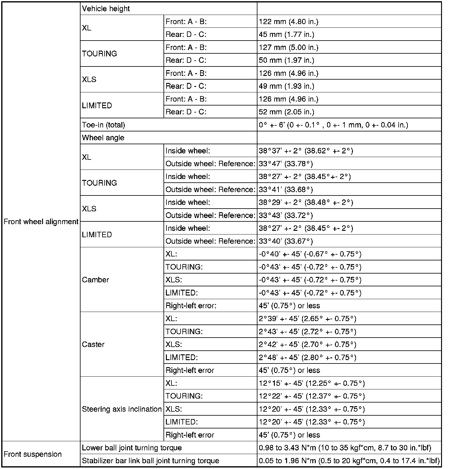 SERVICE SPECIFICATIONS: SUSPENSION: SERVICE DATA