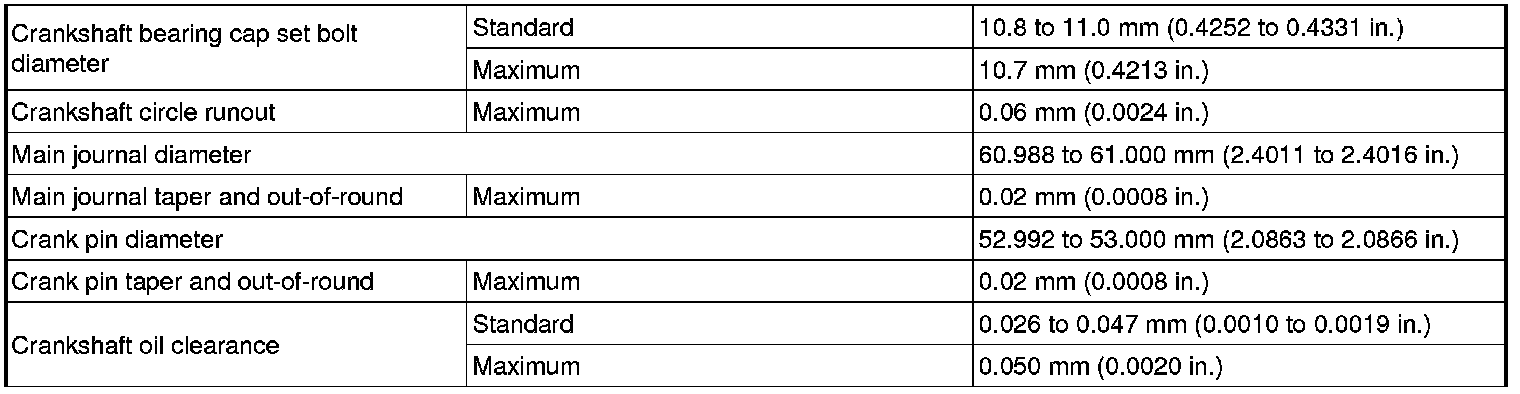 MAIN BEARING CLEARANCE, STANDARD & LIMIT