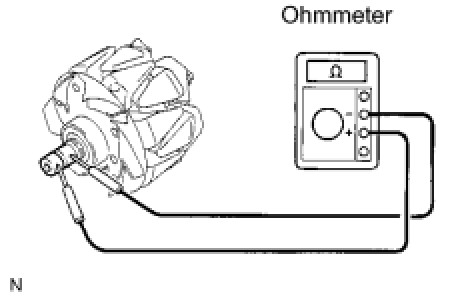 (1) Using an ohmmeter, measure the resistance between the slip rings.