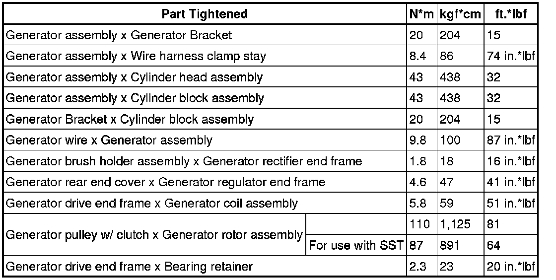 SERVICE SPECIFICATIONS: 2GR-FE CHARGING: TORQUE SPECIFICATIONS