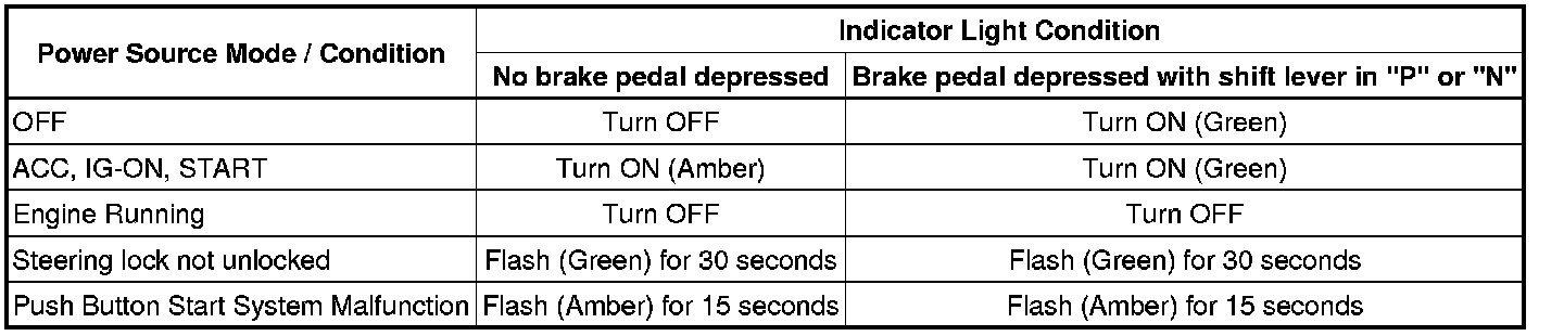 Engine start conditions or system malfunctions can be checked by the status of the engine switch indicator light.