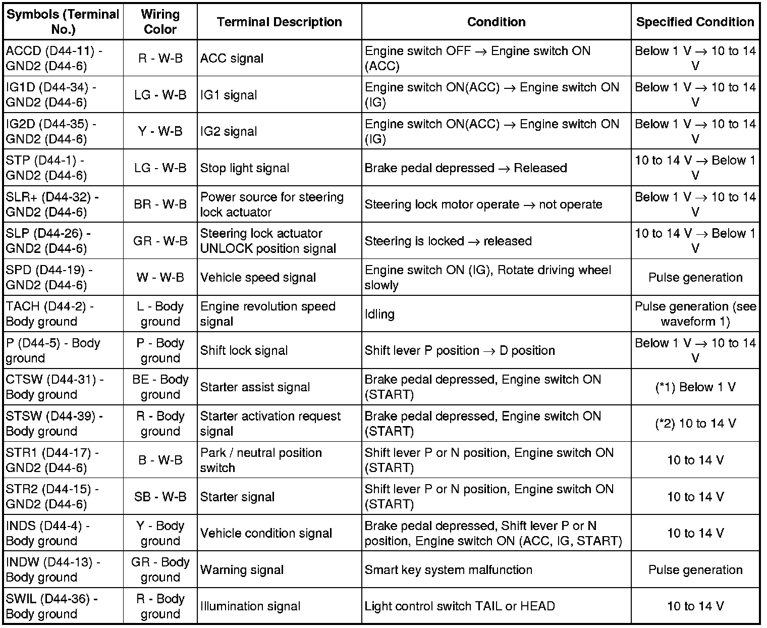 (f) *1: Voltage is output only when the engine is cranking.