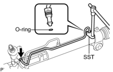 (b) Remove the 2 O-rings from the left turn pressure tube.