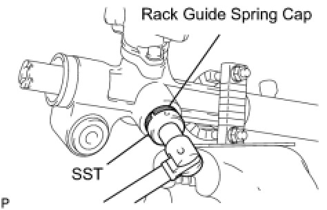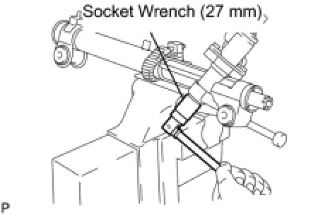 (a) Using a socket wrench (27 mm), remove the rack housing cap.