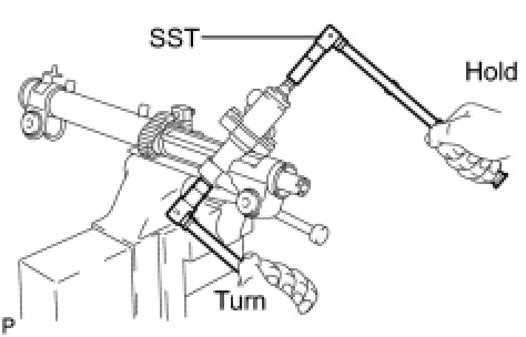 (b) Using SST, hold the control valve shaft and remove the nut.