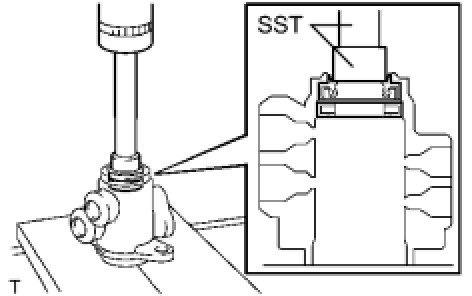 (a) Using SST and a press, remove the control valve upper bearing and the oil seal from the control valve housing.