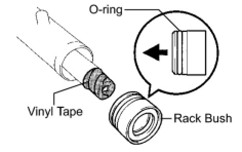 Wrap vinyl tape around the end of the steering rack in order to prevent damaging the rack bush oil seal.