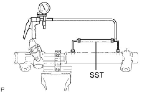 (b) Using SST, install the right turn pressure tube to the power steering gear assembly.
