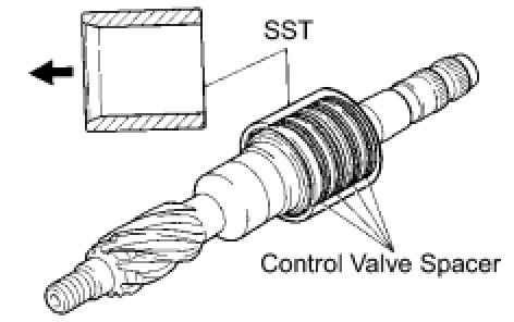 (k) Using SST, hold the control valve from rotating and install a new lock nut.