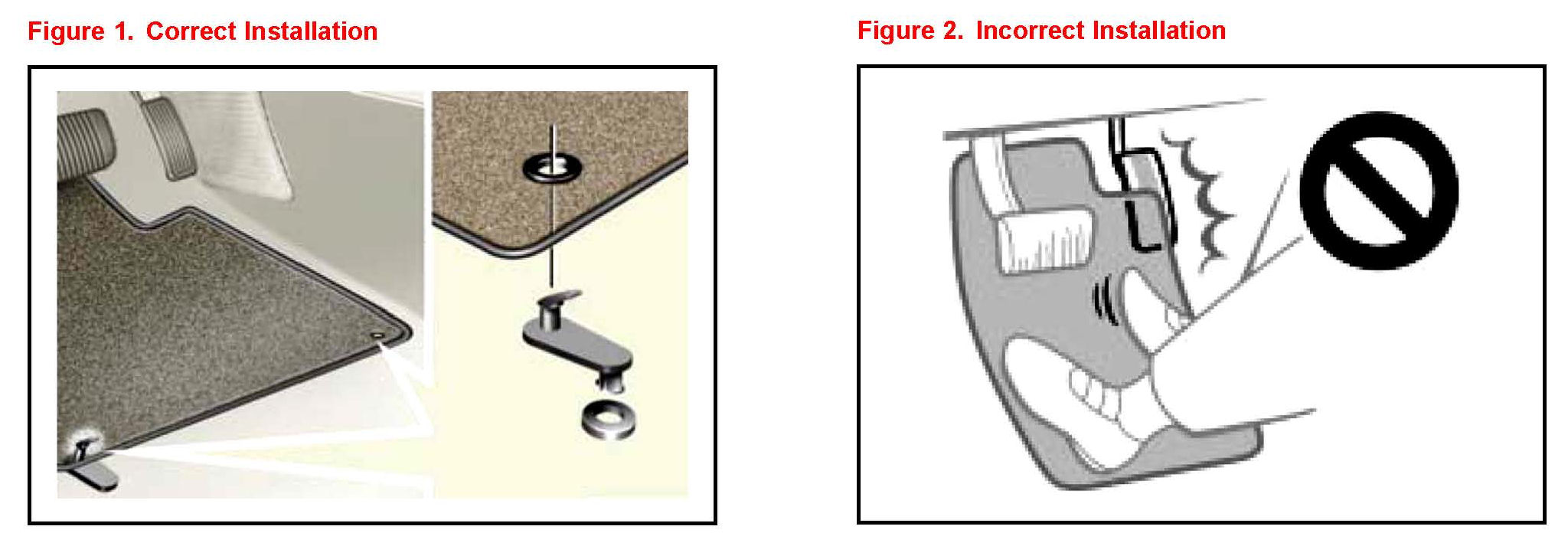 2010 model year Toyota vehicles are equipped with driver's side floor mat retaining clips to help ensure the floor mat stays in the correct position. In addition, some models may utilize retaining clips for passenger's side floor mats as well. Attach the driver's side and passenger's side (if applicable) floor mat to the vehicle carpet using the floor mat retaining clips during Pre-Delivery Service (PDS).